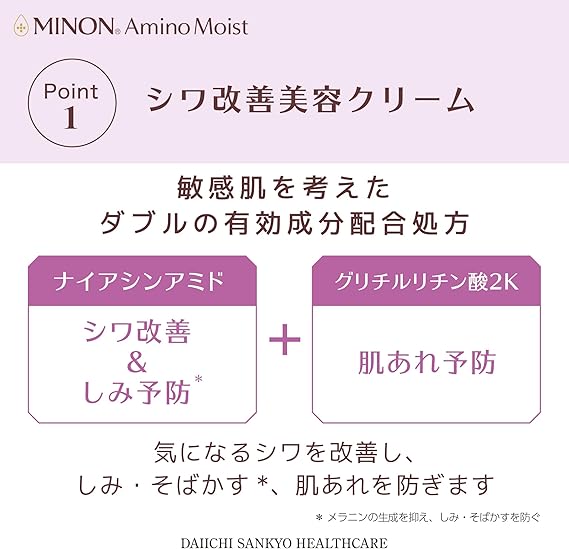 【ミノンから生まれたフェイスケア「ミノン アミノモイスト」】敏感肌を研究し続けた製薬会社がつくる独自の処方で「やさしさ」×「美しさ」を実現しました。バリア機能が低下しがちな肌を守りながら洗い、うるおいで満たして、すこやかに美しく保ちます。