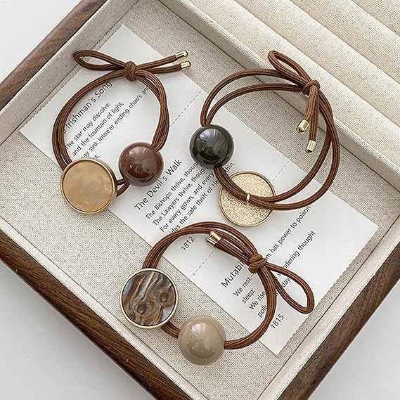【デザイン】リボンとメタルアクセサリーが付いており、ヘアゴムをよりおしゃれでエレガントに見せてくれます。シンプルなスタイルでは、コーディネートに間違いは発生しません。お団子ヘアなど、さまざまなヘアアレンジにも使いやすく、とっても便利。