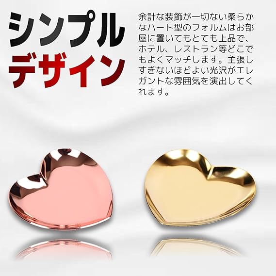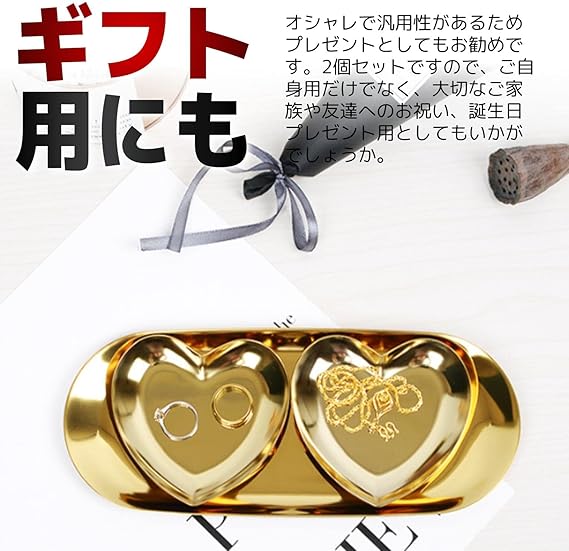 fogman ジュエリー トレイ アクセサリー ステンレス ハート かわいい 小物入れ 2個セット (ゴールド) a