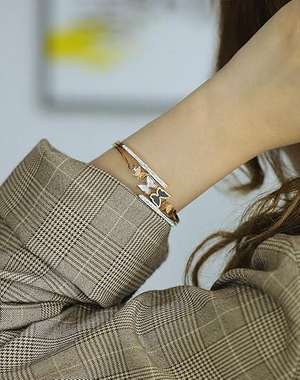 ブレスレット レディース ゴールド ジルコニア 蝶バングル チタン製 かわいい キラキラ 金属アレルギー対応 おしゃれ 女性 調節可能 ファッション アクセサリー a
