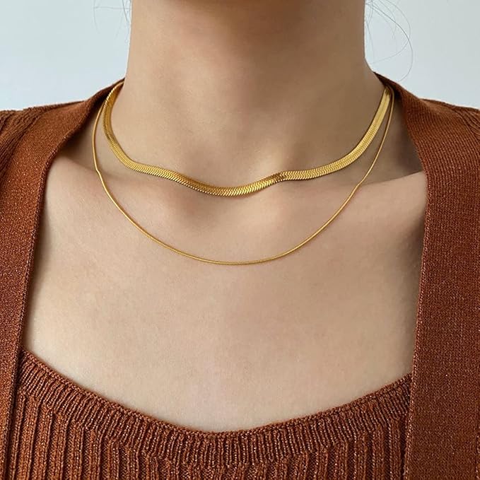 [Tasiso] レディース ネックレス スネークチェーン 二本 セット シルバー ゴールド ステンレスチェーン 金属アレルギー対応 細い 極細 繊細 鎖 細め チェーンネックレス メンズ プレゼント ギフトBox付き
