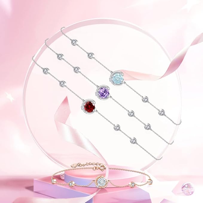 YUIITU ブレスレット レディース 上質ジルコニア 誕生石「月の姫」 ブレスレット 18K コーティング 三日月 ブレスレット 金属アレルギー対応 シルバー ブレスレット 女性 大人 アクセサリー 長さ調整可能 ブレスレット 細タイプ プレゼント 記念日 結婚式 誕生日