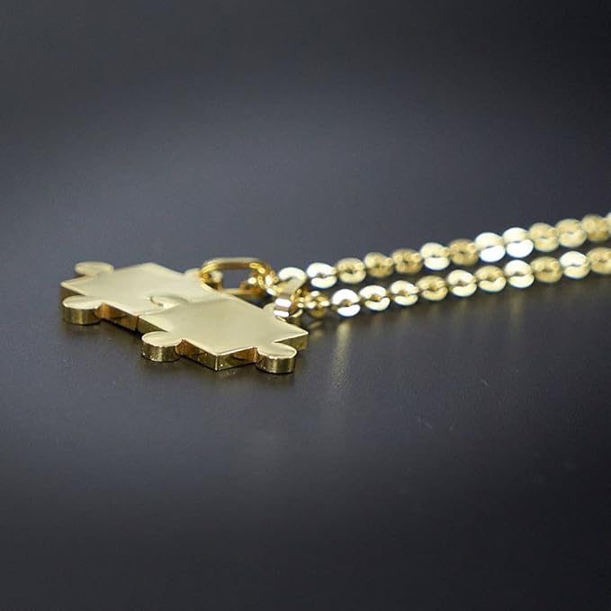 [Rockyu] ネックレス レディース ゴールド 18金 あずきチェーン 長さ 60cm ジグソーパズルネックレス 可愛い ピースパズルペンダント チタン 金属アレルギー対応 アクセサリー a