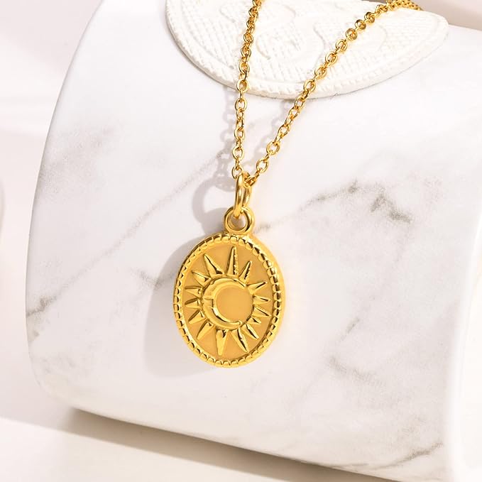 [Rockyu] ネックレス レディース ゴールド 18k ブランド 金属アレルギー対応 ステンレス 太陽と月ペンダント 天体ネックレス 惑星モチーフ アクセサリー 太陽ネックレス 母の日プレゼント