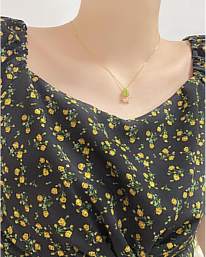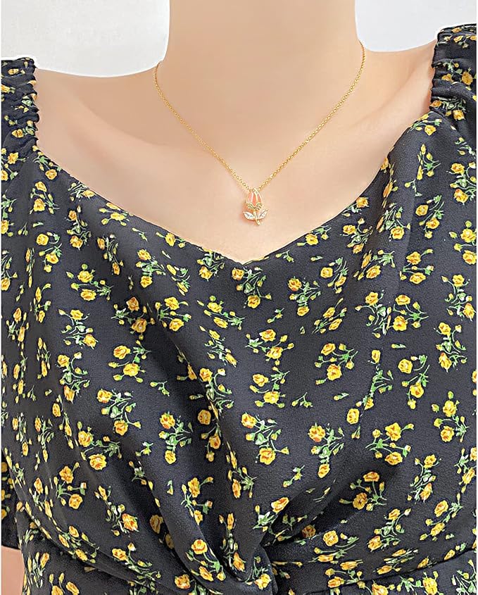 [Rockyu] ネックレス レディース ピンク フラワーペンダント きらきら ジルコニア 花ネックレス 鬱金香 アクセサリー チューリップネックレス ファッション プレゼント