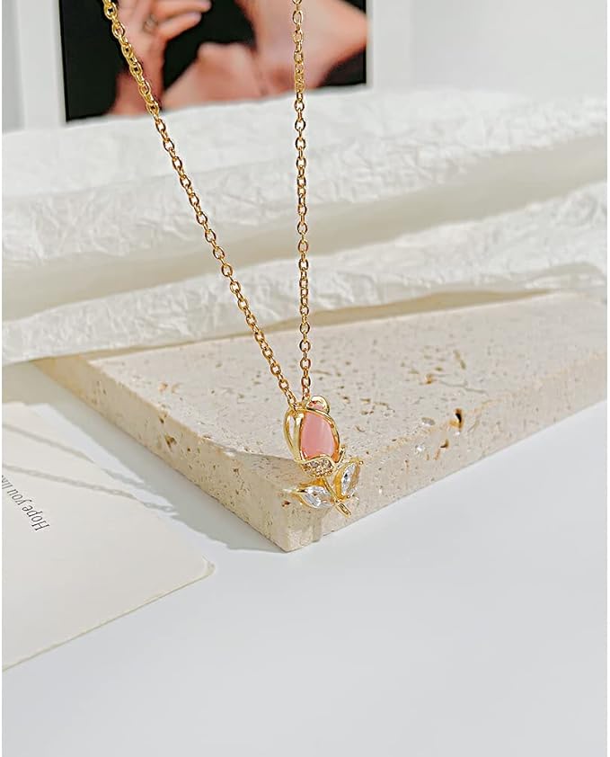 [Rockyu] ネックレス レディース ピンク フラワーペンダント きらきら ジルコニア 花ネックレス 鬱金香 アクセサリー チューリップネックレス ファッション プレゼント a