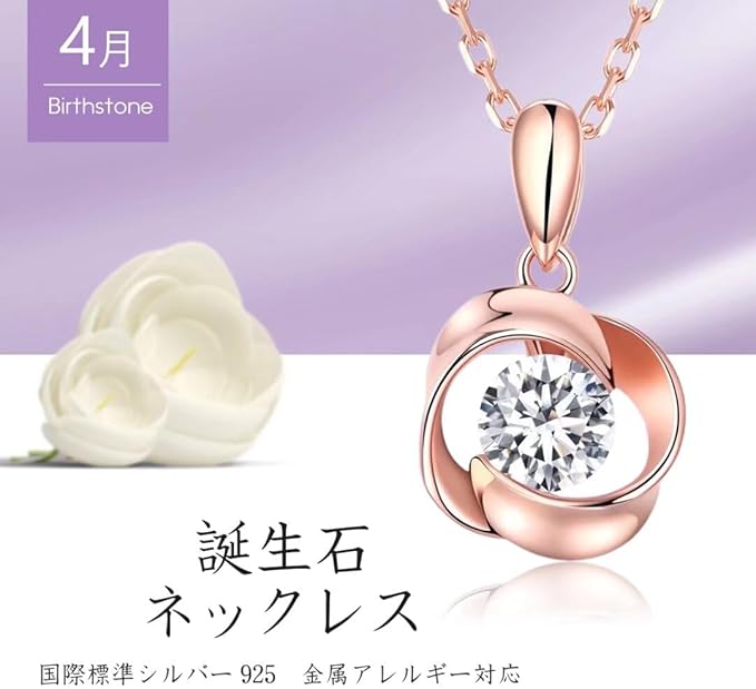 [JUDYの秘密] 誕生石ネックレス 天然石 オーストリアクリスタル ローズモチーフ シルバー925アクセサリー K18ゴールドメッキ レディースネックレス a