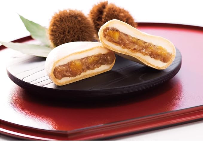 【栗たっぷり特製栗餡】3種類の甘露煮・粗栗・栗粉のそれぞれの風味・食感を活かして、白餡と混ぜて作った「特製栗餡」をバニラアイスと最中でサンドしました。風味豊かな栗餡とバニラアイスの相性は抜群です。
