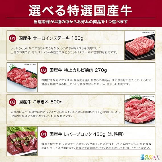 景品 パネル 当選者が4種類のお肉から選べる特選牛 (国産牛 焼肉 サーロイン ステーキ 等) 目録 セット[ 二次会/ビンゴ/ゴルフコンペ ] 景品ゲッチュ a