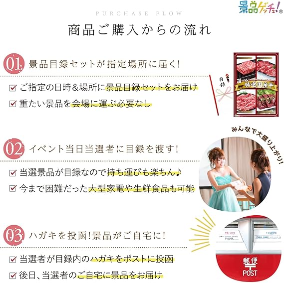 お届け内容:目録ハガキ(引換券) / 景品発表 A4パネル / 商品一覧表 / 個人情報保護シール ※当商品は目録をお届けし、後日指定場所へ商品を発送します。