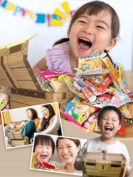 【お菓子宝箱】開けた瞬間、大量の駄菓子が溢れ、子供のテンションが爆あがり↑↑モノゴコロの駄菓子詰め合わせセットが登場♪子供の喜ぶ姿が何より嬉しい御菓子セット♪ みんなが選んだお菓子詰め合わせが大容量、大ボリュームでギチギチに大量駄菓子を宝箱に詰め込みました!子供だけではなくご家族、お孫様等、大切な人へのプレゼントやギフトとして喜ばれる『駄菓子屋モノゴコロ』が誇るお菓子詰め合わせ宝箱です!