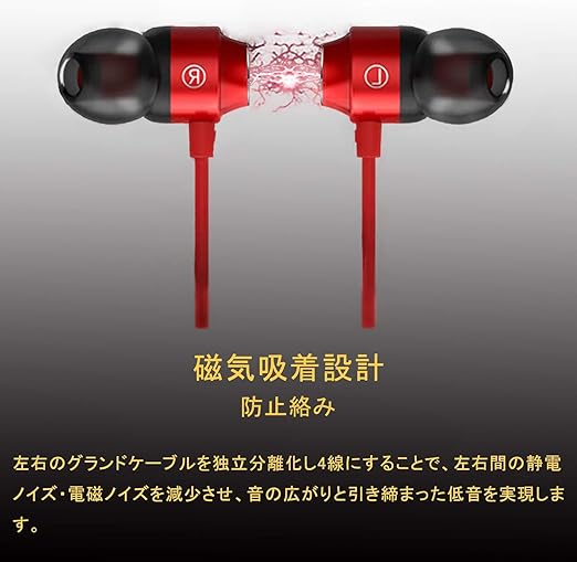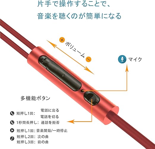 【2023秋 イヤホン3.5mm 有線 マイク付き リモコン付き ヘッドホン コンパクト ノイズ遮断 重低音 クリア通話 音漏れ防止 カナル型 磁気 マグネット式Android/iPhone/PC多機種対応 イヤフォン(レッド) a