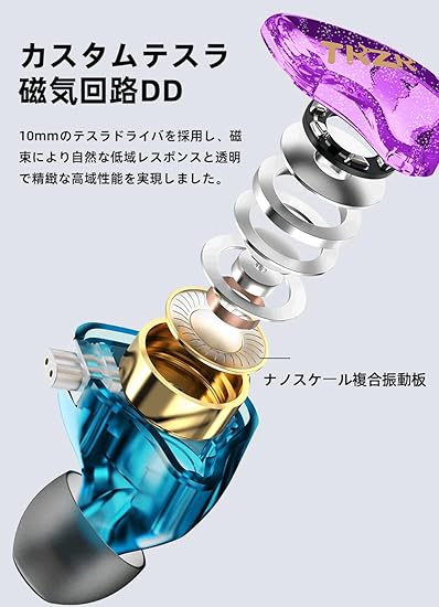 Yinyoo カナル型 イヤホン 有線 イヤモニ型 TKZK TK01 10mmダイナミック ステレオ インイヤー モニター 中華 イヤフォン マイク付き ゲーミング イアフォン Wired Earphones リケーブル対応 (パープル・マイク付き) a