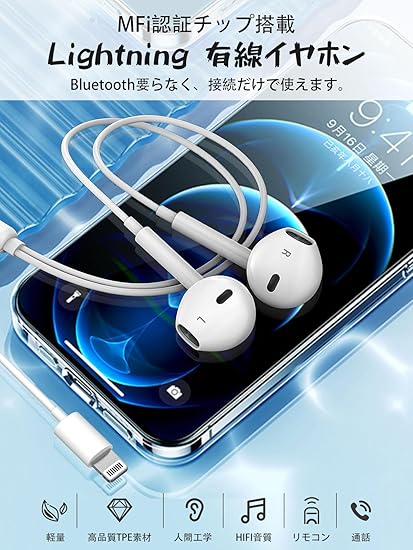 【正規MFi認証イヤホンで信頼感満々♪】iPhone イヤホンは正規MFi認証を取得です。純正チップを搭載しており、より安定した接続を実現した上、iOSのアップデート後も問題なく使用できます。面倒なBluetooth接続も設定も一切不要、iPhoneに挿すだけですぐ使えるのも魅力の1つです。大切なiPhoneには安心なMFi 有線 イヤホンを選びましょう。音質は良く、IOSデバイスにダメージも与えません。
