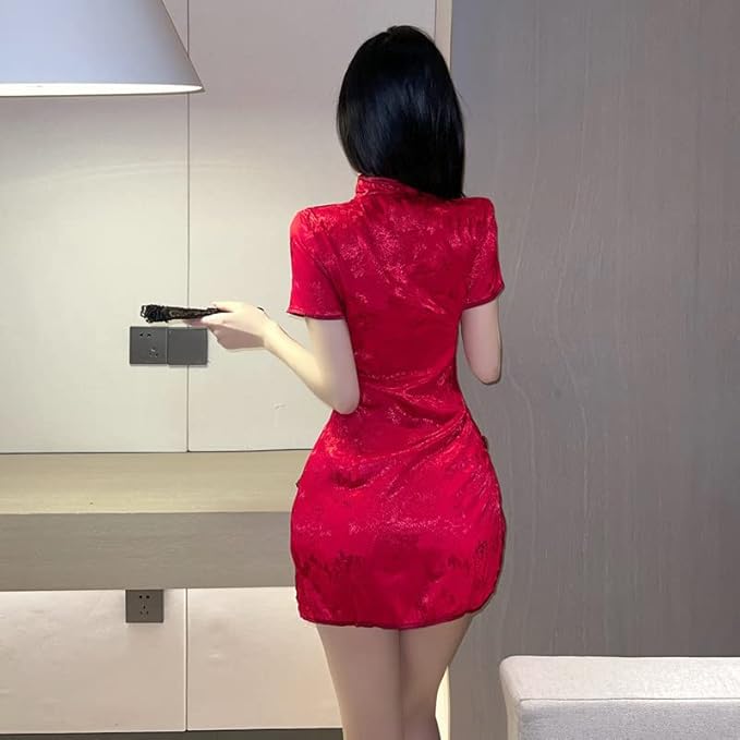 [harukita] チャイナ服 フルセット チャイナドレス セクシー コスプレ 2点セット (ベビードール/Tバック)(ブラック) ランジェリー レディース ワンピース スリット ロング コスチューム 刺繍 可愛い コスプレ Tバック付きレディース 衣装 女性用 レディース