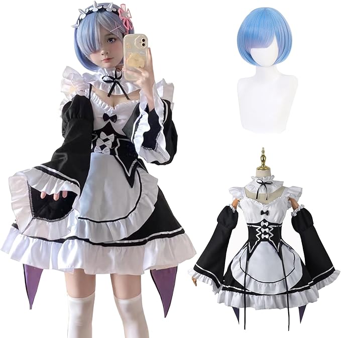 [神併良品] Re:0から始まる異世界生活 コスプレ ウィッグ付き レム ラム エミリア 菜月昴 コスプレ メイド服 リゼロ コスプレ衣装 大人用 仮装 cosplay a