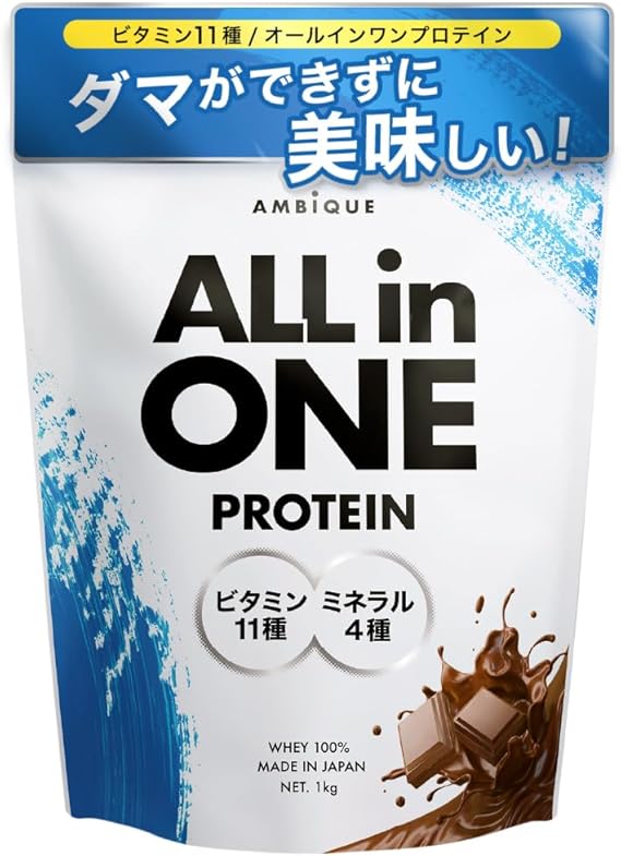 アンビーク オールインワン プロテイン ホエイ チョコレート風味 ビタミン11種配合 ミネラル4種配合 国産 1kg (1kg×1個, チョコレート) a
