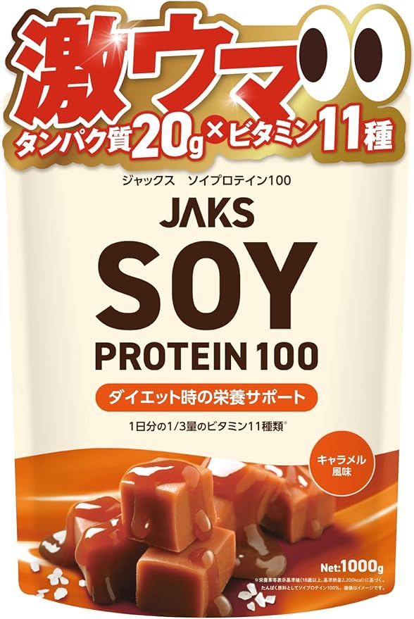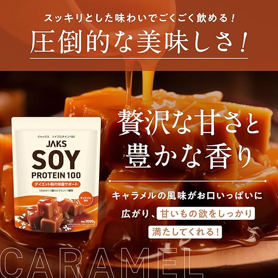 ジャックス ソイ プロテイン1kg 国内製造 おいしい ダイエット ビタミン 高濃度ソイプロテイン 高たんぱく質 粉末 大豆たんぱく 溶けやすい ぷろていん (1kg, キャラメル) a