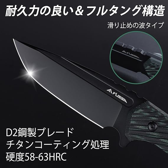 FLISSA アウトドアナイフ シースナイフ フルタング構造 D2鋼ブレード マイカルタハンドル 登山 キャンプ トレッキング 防災用 災害用 釣り 家庭用 DIY用 全長250mm 専用シース付き a