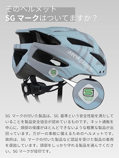 【実用性と安全の証”SGマーク認証” 】この製品は安全協会に認証されたSGマーク適合商品です。「SGマーク規格」とは製品協会が認証した製品に対し、 安全基準・製品認証・事故賠償が一体となった保証をする世界的にも類を見ない規格です。政府はSGマークの付いた製品の着用を奨励しています。頭部をしっかりと守れるヘルメットをお選びください。