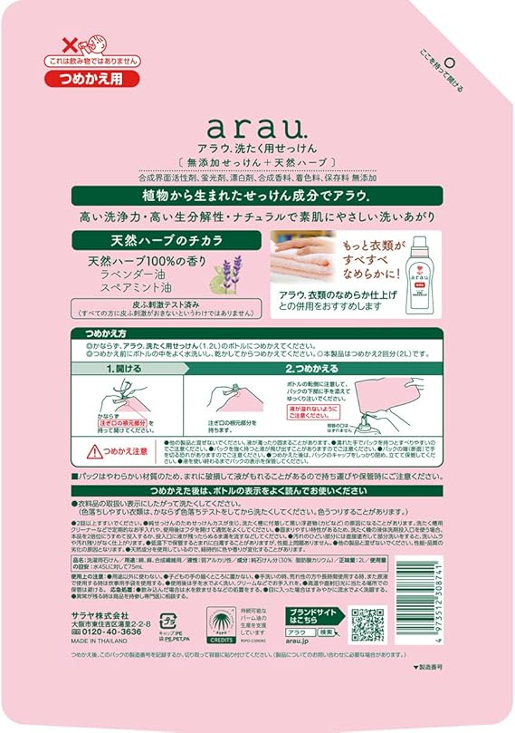 東京サラヤ アラウ. 洗たく用せっけん 液体 詰替用 ラベンダー&スペアミント 2L a