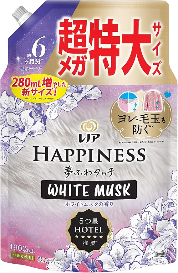 レノア ハピネス 夢ふわタッチ 柔軟剤 ホワイトムスク 詰め替え 1,900mL [大容量] a