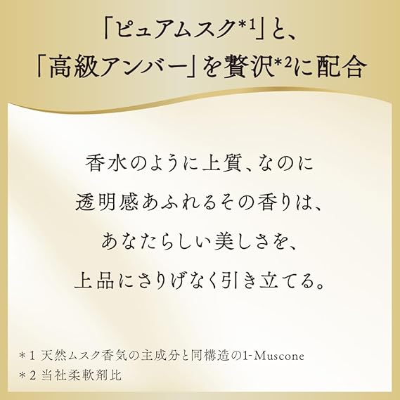 素肌のあたたかさを想わせる「ピュアムスク*1」と、 香水には欠かせない「高級アンバー」を贅沢*2に使用。