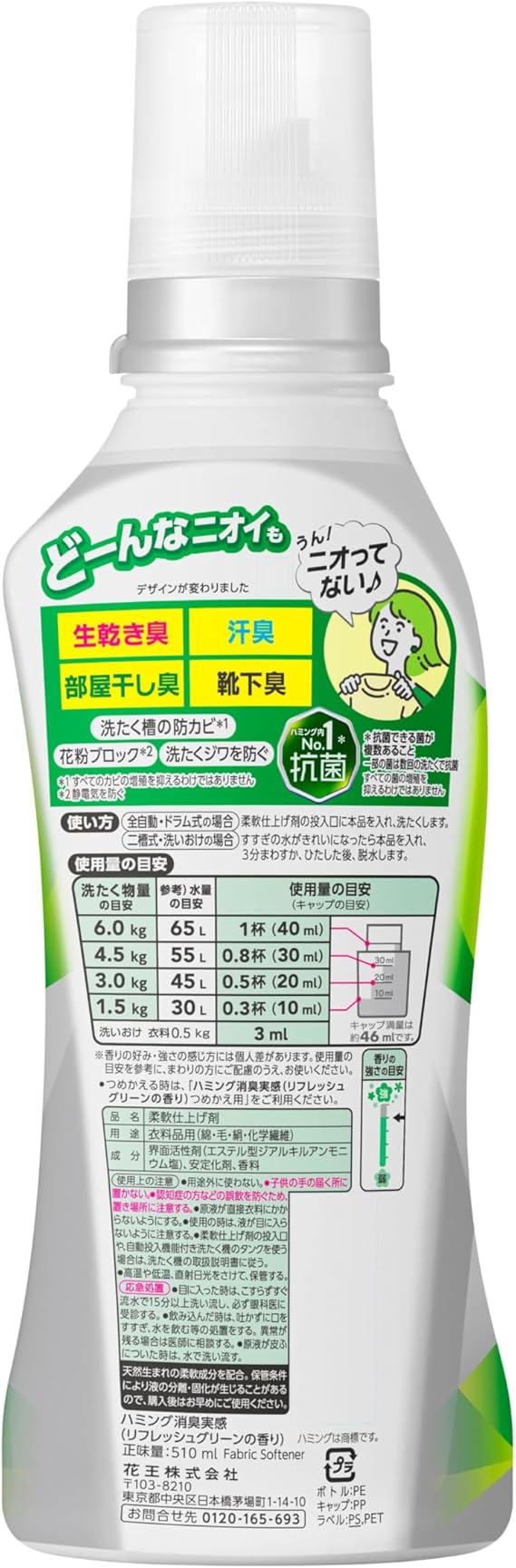 ハミング消臭実感 柔軟剤 部屋干し/曇り干し/夜干しどーんな時も無敵消臭! リフレッシュグリーンの香り 本体510ml a