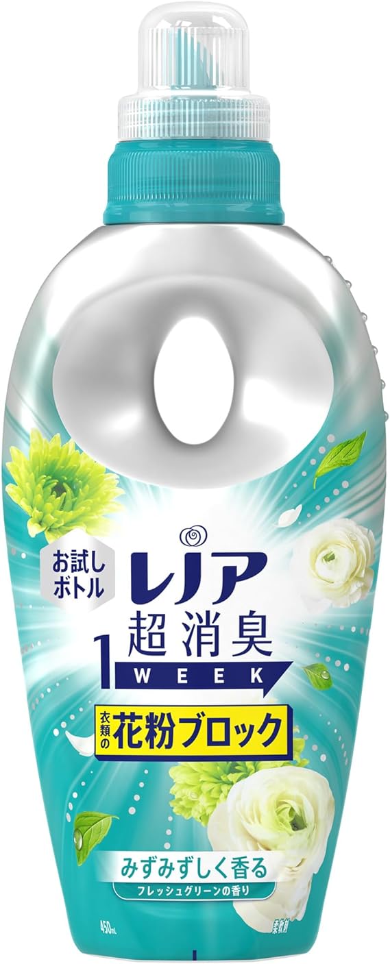 レノア 超消臭1WEEK 柔軟剤 衣類の花粉ブロック フレッシュグリーン お試しボトル 450mL a