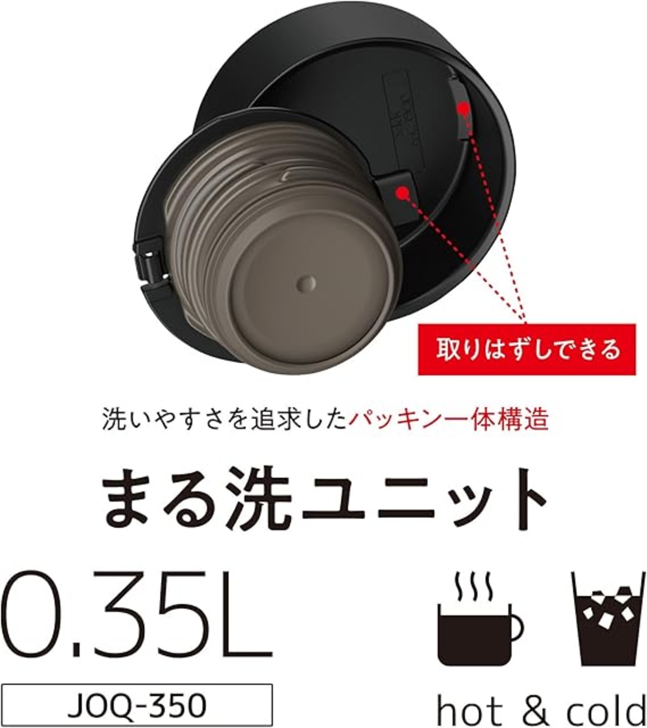 【せんとパッキン一体型・食洗機対応】サーモス 水筒 真空断熱ケータイマグ350ml ブラック 隅々まで簡単に洗える 全てのパーツ食洗機OK ステンレス ボトル 軽量コンパクト JOQ-350 BK a