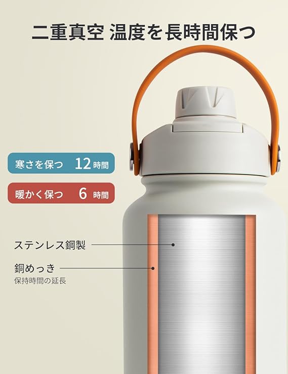 Blackube水筒 1リットル 真空断熱 直飲み ステンレス鋼 保温 保冷 スポーツボトル スポーツ飲料対応 男の子 女の子 大人 子供 荼白 a