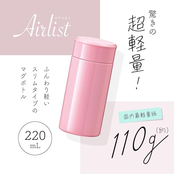 アトラス 水筒 220ml 保冷 保温 真空断熱 ステンレス 超軽量 マグ ボトル スリム 小さい ミニボトル スポーツドリンク対応 魔法瓶 直飲み ピンク Airlist エアリスト ARSS-200PK a