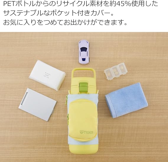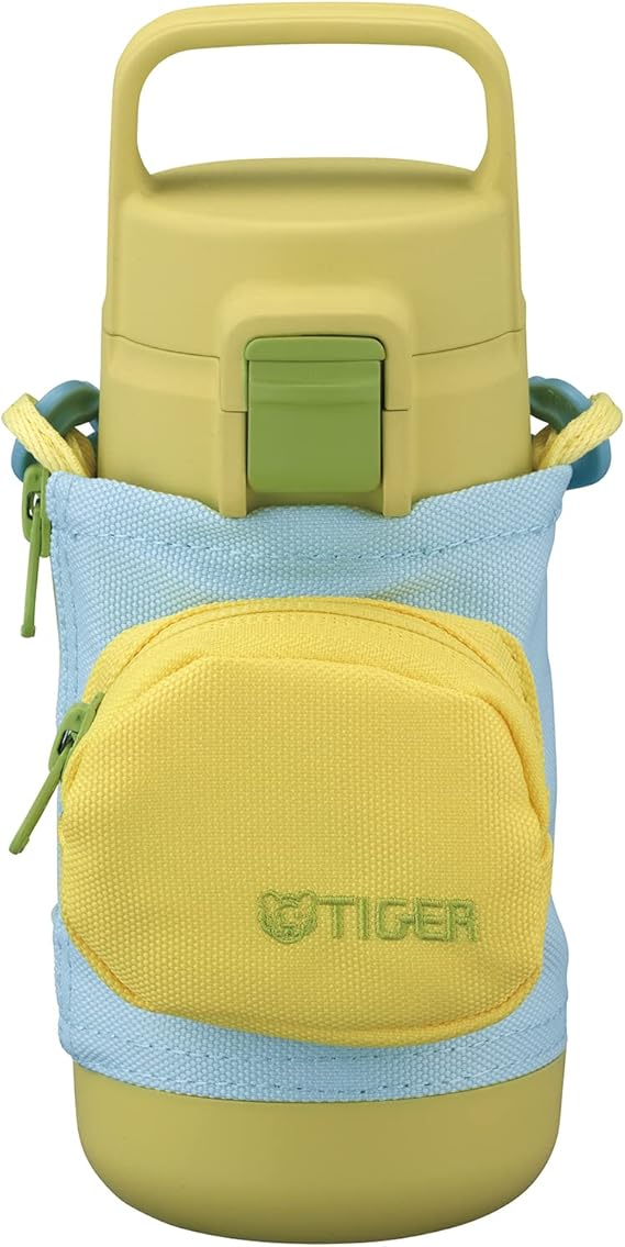 【食洗機対応】タイガー 水筒 350ml 手ぶらでおでかけ マルチポケット付きボトル 女の子 男の子 ワンタッチ 洗いやすい 広口 ハンドル付き サステナブル リサイクル素材 親子コーデ ステンレスボトル イエローブルー MTA-A035YB a