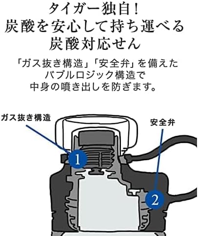 炭酸ガスの噴き出しを防ぎ開けやすい「ガス抜き構造」と内圧の高まりに対応する「安全弁」を備えた当社独自のBubbleLogic(バブルロジック)を採用。