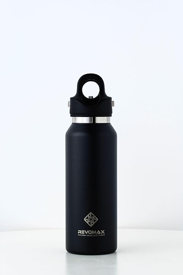 【REVOMAX公式 】12oz slim 355ml 炭酸対応 ステンレスボトル 18時間保温 36時間保冷 真空断熱 水筒 ギフト (Onyx Black) a