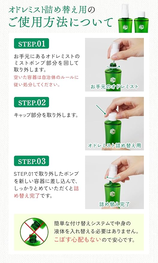 【 オドレミスト本体&詰替え用の2本セット】【 日本製 】クリニック等でも使われる塩化アルミニウムを主成分とした制汗剤です。香りやパウダーで汗のニオイをごまかすのではなく、汗の出口に蓋(フタ)をして汗そのものを出にくくする制汗剤です。 こんな方におすすめワキ汗で汗ジミができてしまうので服選びが大変・周りの人に汗臭いと思われてないか心配・足の汗がひどく靴の中がいつもムレていて臭ってしまう・手汗のせいで学業や仕事の支障が出ている