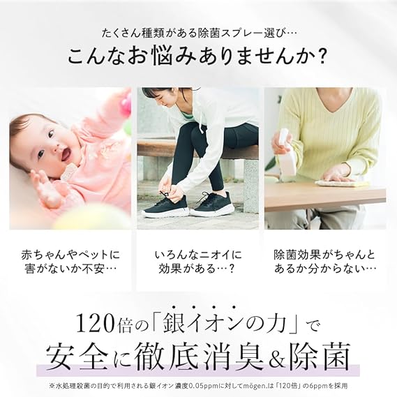 【無添加100%で舐めても安心!ニオイの原因菌に直接アプローチ】m?gen. 除菌スプレー 銀イオン水 除菌スプレー 消臭・抗菌 化学薬品無添加 日本製 アルコールフリー 無臭 天然成分100% (成分は純銀と純水とリンゴ酸のみ) (300ml ホワイトラベル) a