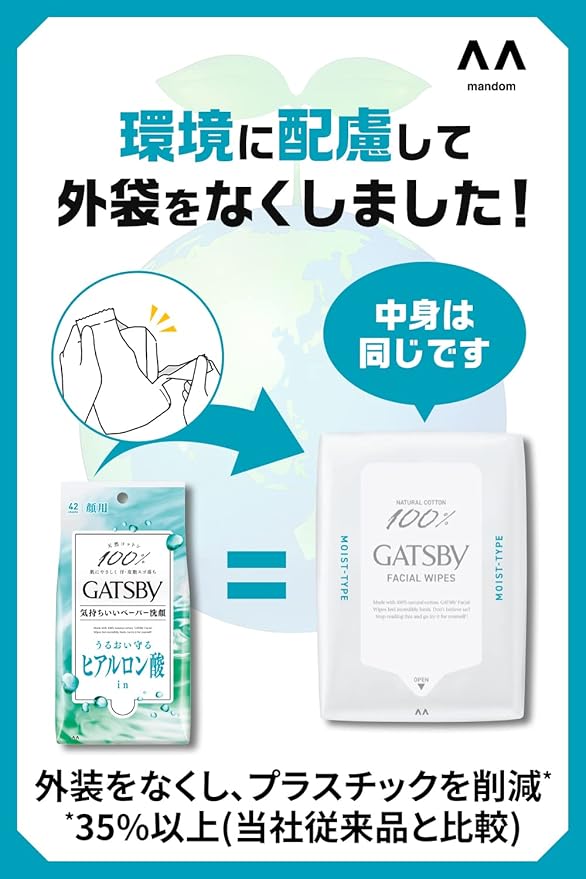 【Amazon.co.jp限定】 GATSBY(ギャツビー) フェイシャルペーパー モイストタイプ [ 保湿 ] メンズ 洗顔シート セット 外装袋レス仕様 42枚×3個 a
