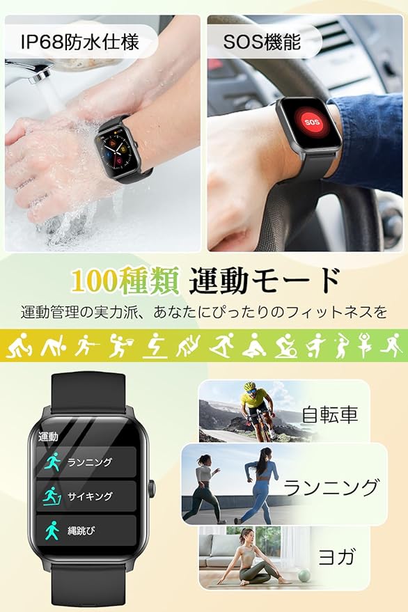 スマートウォッチ【2025年業界最新傑作】iPhone対応 アンドロイド対応 最新Bluetooth5.3 通話機能 音楽再生 1.9インチ大画面 活動量計 腕時計 100種類の運動モード スポーツウォッチ IP68防水 SMS/Twitter/Line通知 SOS機能 iPhone/アンドロイド対応 メンズ レディース プレゼントに最適(Black) a