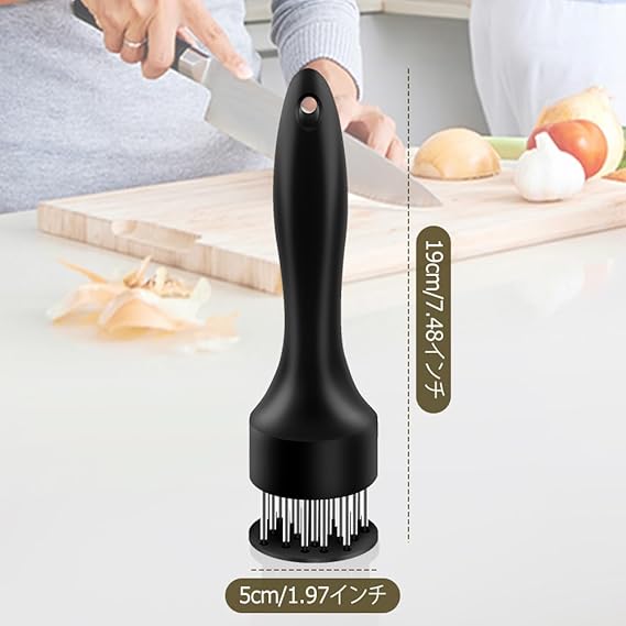 perfect肉の柔らかいsped 21個のかみそりの鋭い松の針型の刃を備えたこの肉の柔らかい剤は、肉の最も厳しいカットさえも簡単にカットし、均一な調理と収縮の減少を確保します。肉の上に数回押すだけで、より柔らかくジューシーな結果を得るために繊維を分解するのに役立ちます。