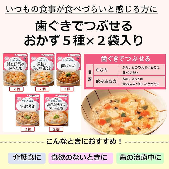 【Amazon.co.jp 限定】 介護食品 キユーピー やさしい献立 歯ぐきでつぶせるおかず 5種×2袋 アソート セット ギフト 敬老の日 介護食品 まとめ買い やわらか食 (区分2) a