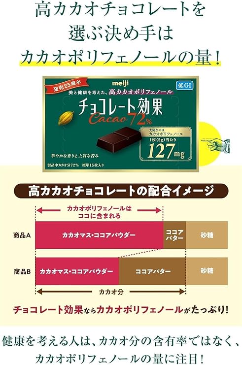 美と健康を考えた、高カカオポリフェノール「チョコレート効果カカオ72%」