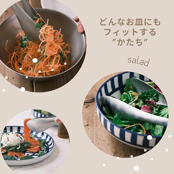 高品質ステンレス製:耐久性に優れ、錆びにくく、長期間使用しても美しさを保ちます。使いやすいデザイン:人間工学に基づいたデザインで、握りやすく、滑りにくい。多用途:焼肉、サラダの盛り付け、フライの裏返しなど、幅広い料理に対応。お手入れ簡単:シームレスな構造で汚れが溜まりにくく、食洗機対応でお手入れも簡単です。