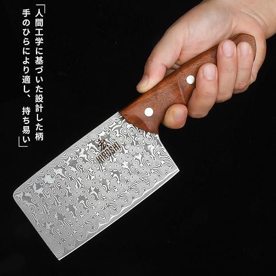2✿(ダマスカス製中華包丁)高硬度・高靱性・耐摩耗性・耐腐食性の優位性を持つ高級の刃物鋼は専門のシェフたちも愛用される鋼材です。鋭い切れ味が長く続き、頻繁に研ぎ直す不要です。錆に強く、濡れた雑巾で拭くだけで清潔キープします。お手入れが簡単に!