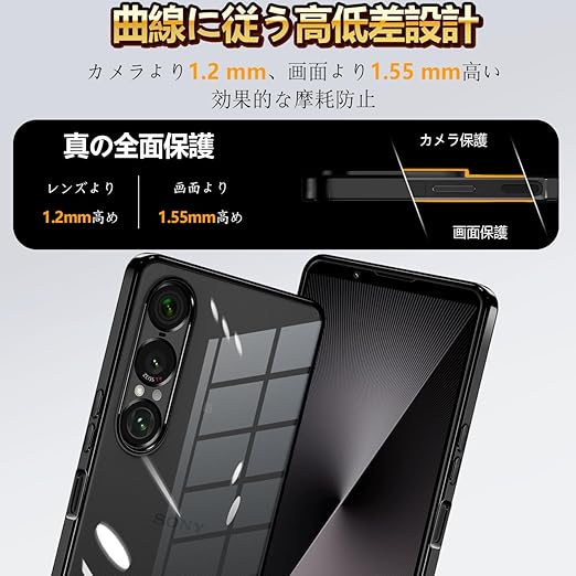 Xperia 1 VII ケース クリア 薄型 透明 TPU ソフト 耐衝撃 黄変防止 ストラップホール付き xperia 1 vii カバー SO-51F対応 Xperia 1 7 ケース(ブラック) a