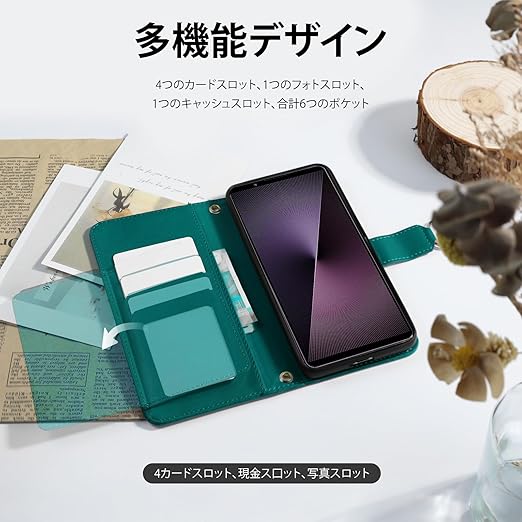 【カード収納機能・スタンド機能】xperia 1 vii ケース 手帳型の内側には6つの独立したポケットがあり、クレジットカード、バスカード、IDカードなどを収納でき、持ち運びが便利で、余分なも