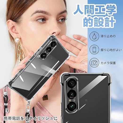 Xperia 1 VII ケース ショルダー クリア ケース 耐衝撃 全面保護 エクスペリア 1 VII カバー ストラップ付き スマホケース 調節可能 肩掛け 斜めかけ 縄掛けケース 紐付き 薄型 軽量 取り外し可能 落下防止【透明】 a