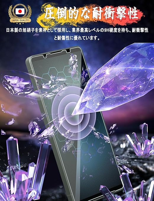 【品質保証】 365日内商品使用上何か問題がある場合、お気軽に弊社までご連絡くださいませ。お客様からのお問い合わせ内容に応じて代替品交換・返金対応を提供致します。(商品の返送は不要、お一人様につき1回限り)【最高硬度9H·飛散防止】日本旭硝子素材を採用、業界最高レベルの9H硬度、ハードコーティング技術により、衝撃を緩和し画面の破損を最低限まで抑え、すり傷や指紋からもスクリーンをしっかりと保護します。万が一非常に強い力や落下等の衝撃により破損する場合が御座いましたら、その際、高品質な抗粉砕フィルム