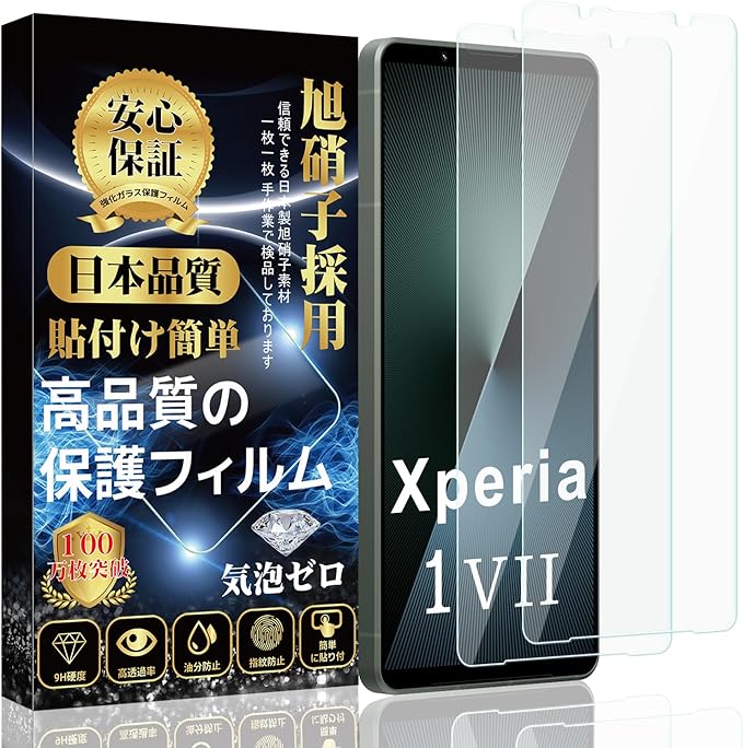 【2枚入り】Xperia 1 VII ガラスフィルム SO-51F 全面保護フィルム SOG15 液晶強化ガラス【日本製素材旭硝子製】硬度9H 貼り付け簡単 気泡防止 自動吸着 撥水撥油 指紋防止 飛散防止 Xperia 1 VII 液晶強化ガラス a