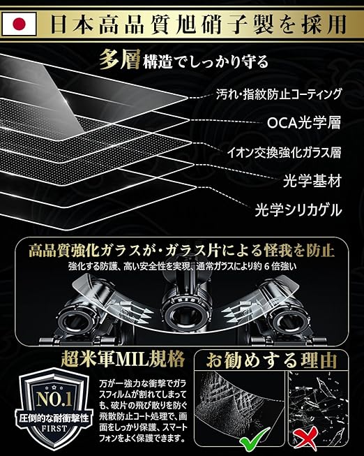 【日本製素材旭硝子製・耐衝撃性!】 日本製旭硝子素材、9H硬度、またハード